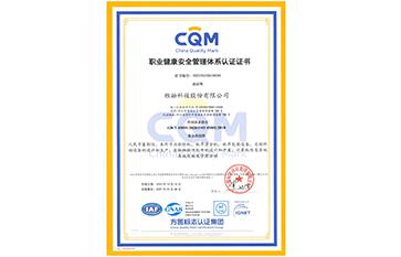職業健康安全管理體系CQM認證證書